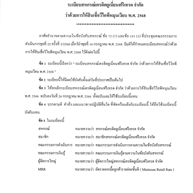ระเบียบสินเชื่อวีไอพีหมุนเวียน พ.ศ.2568